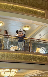 5 Posted: June 20, 2025 Captain Mickey Mouse in his white and blue costume waves to guests boarding the Disney Fantasy.