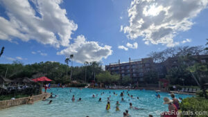 1 Posted: May 27, 2025 The Uzima Springs Pool at Disney’s Animal Kingdom Villas Jambo House is seen under lots of sunshine as guests swim and relax in the area.