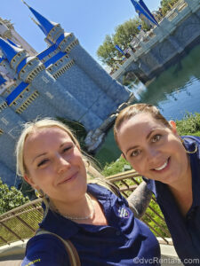 1 Posted: April 29, 2025 DVCR team members Allison and Stacy pose together with smiles at Magic Kingdom. Cinderella Castle can be seen under a sunny sky in the background.