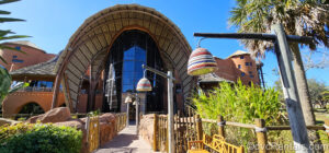 1 Posted: March 18, 2025 The brown exterior building and thatched roof of Disney’s Animal Kingdom Villas are seen under a sunny sky. A stone pathway leads to the building and is lined with lampposts adorned with colorful lampshades.