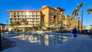 2-feature Posted: February 5, 2025 The yellow and brown exterior of Disney’s Polynesian Island Tower is seen in the sunshine. In front of the building is a resort pool with palm trees, loungers, and tables with umbrellas around it.