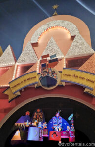 10 Posted: May 20, 2025 A sign showing a drawing of children in a boat and the phrase “Welcome to the happiest cruise that ever sailed” sits above the entry way into the it’s a small world attraction.