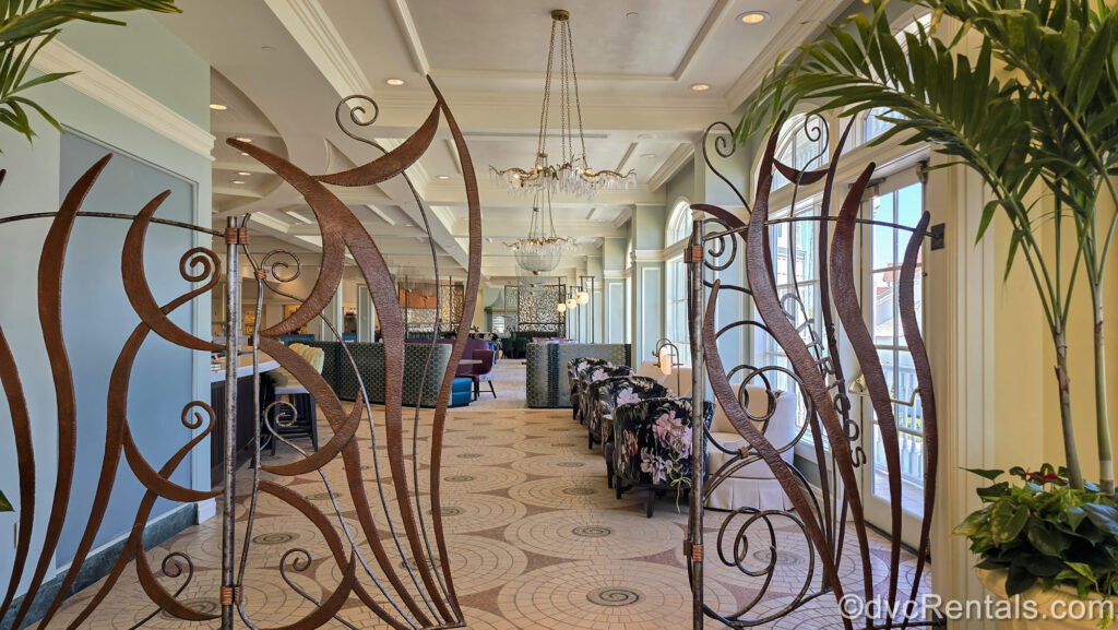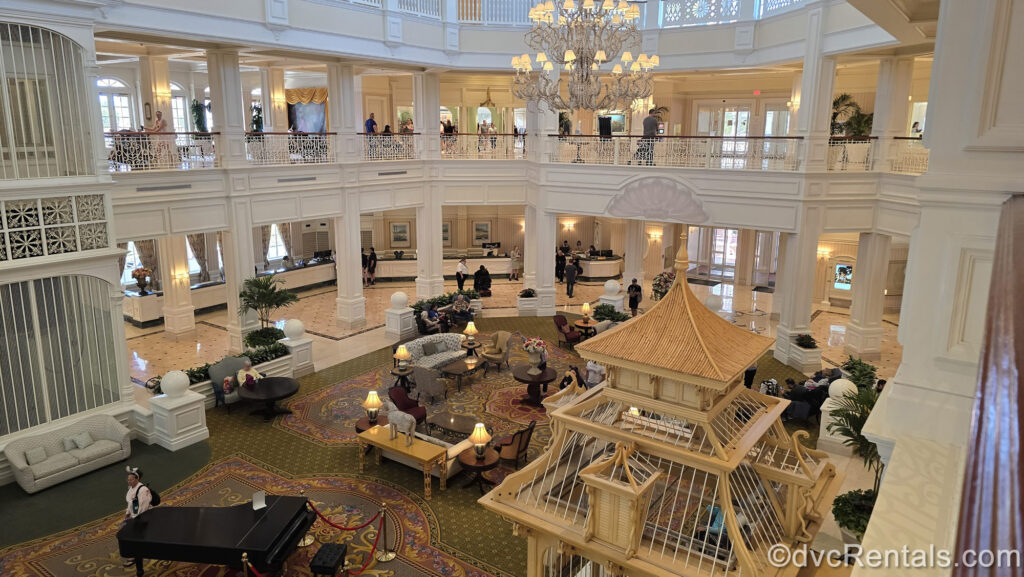 The resort’s main building is home to the Grand Lobby, a breathtaking space filled with elegant white decor, intricate brown tile designs, and dazzling chandeliers. Marvel at the grand birdcage, the stunning enclosed elevator, and the magnificent grand piano, which often features live performances. While it’s undergoing some reimagining right now, every corner of the lobby is designed with luxury in mind and we can’t wait to see what it will look like when the refurbishment is complete!