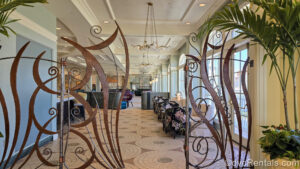 6 Posted: May 6, 2025 The brown, abstract cut entry gates to Citricos. Behind the entrance the restaurant’s pastel-colored interior, lounge area, and main dining room seating are seen.